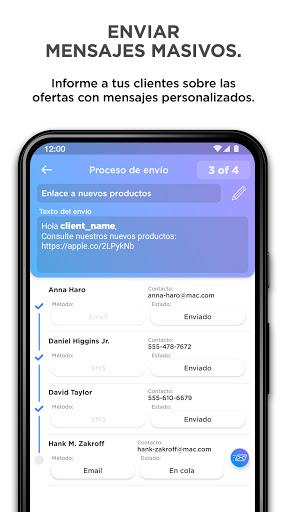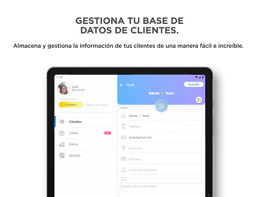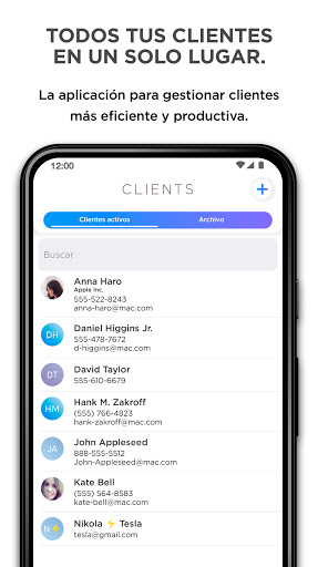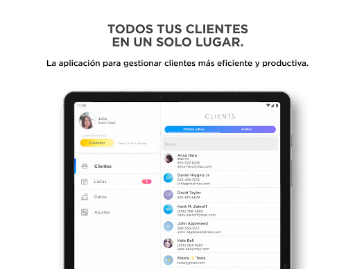 La aplicación Clientes te dará nuevos medios para interactuar con tus clientes. Tu presencia en la oficina ya no es necesaria, ya que las mismas tareas se pueden realizar a distancia, estando en casa, de viaje, o en reuniones externas. Puedes tomar notas, importar contactos, añadir recordatorios, enviar correos y SMS, e incluso llamar a tus clientes desde la aplicación Clientes.