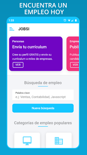 Con la app de Trabajos en España, puede encontrar las mejores ofertas; También puede filtrar la búsqueda por categorías. Nuestra app de búsqueda de empleo es de gran alcance e inteligente que nos permite ofrecer las mejores ofertas de empleo de acuerdo a su criterio de búsqueda.
