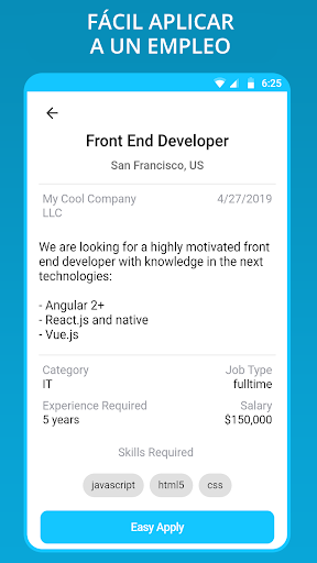 Después de haber encontrado ese trabajo que tanto estaba buscando en España, puede aplicar fácilmente a través de nuestra aplicación y compartir la oferta de trabajo.