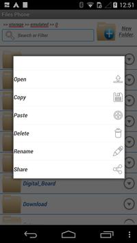 Administrador de Archivos para android. abrir, copiar, pegar , eliminar, compartir tus archivos del telefono, crear carpeta y muchas opciones mas disponibles.