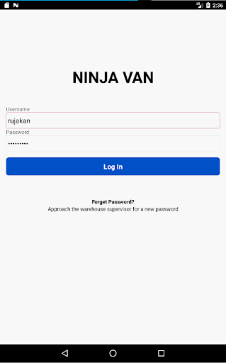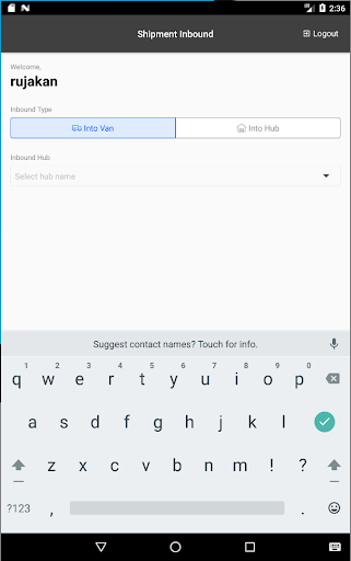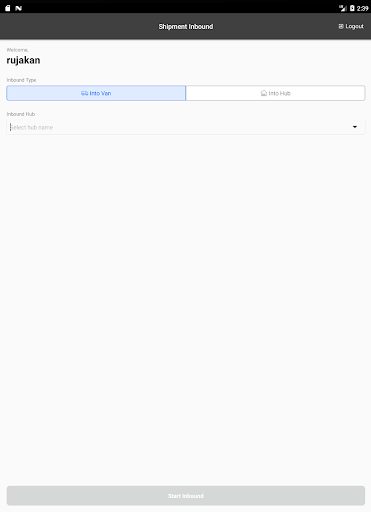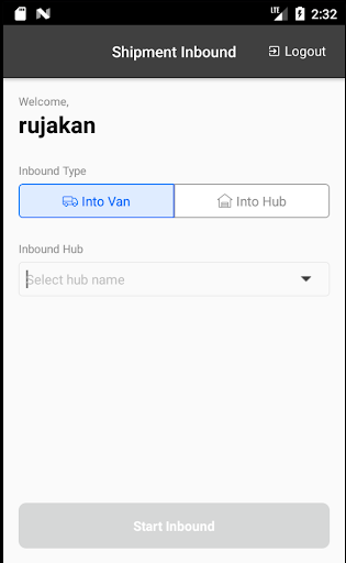 Una aplicación para los conductores Ninja Van Middle Mile para escanear el envío (dentro de la van, Into-Hub)