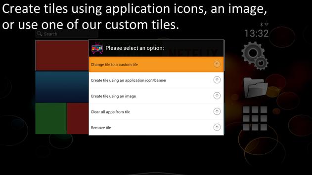 * Ability to customize tiles using any image, an application icon/banner, or use an included custom made tile.