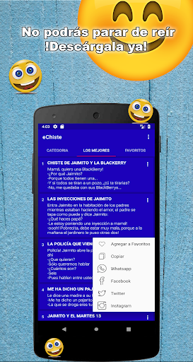 Tú podrás añadir todas los chiste que más te gusten a favoritos, para poder seleccionar las que más te gusten de una forma más rápida.