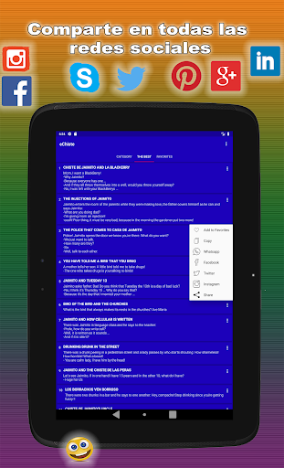Tú puedes COMPARTIR tus chistes favoritos con otras aplicaciones y personas.