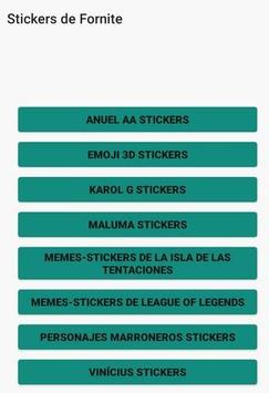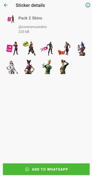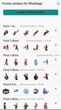 La aplicación tiene Stickers (Pegatinas) de Fornite . Los Stickers pueden ser descargados para poderlos utilizar por WhatSapp. La aplicación estará actualizándose continuamente por lo tanto ¡Estaremos agregando nuevos stickers y paquetes y actualizando regularmente!