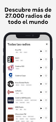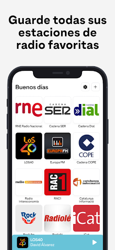 * Los logotipos de las radios presentes en la aplicación son propiedad de sus respectivos propietarios y sólo se indican para ayudar a identificar las radios. Los logotipos de las radios presentes en el avance son los de RNE Radio Nacional, Cadena SER, Cadena Dial, LOS40, Europa FM, Cadena COPE, Radio Intereconomía, RAC1, Catalunya Informació, Rock fm, Radiolé, iCat. Esta aplicación no está afiliada a estas emisoras de radio.