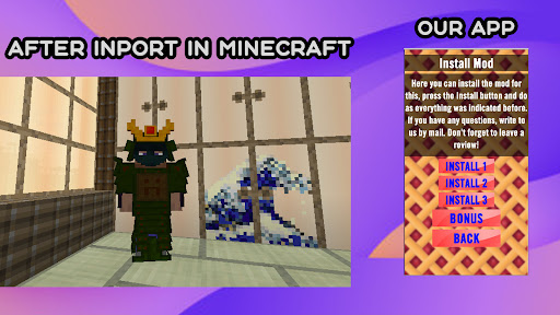 Your friends and other players will be delighted with the appearance of this Samurai mod for Minecraft PE, they will envy you, and you will always be in the spotlight, because you deserve it!