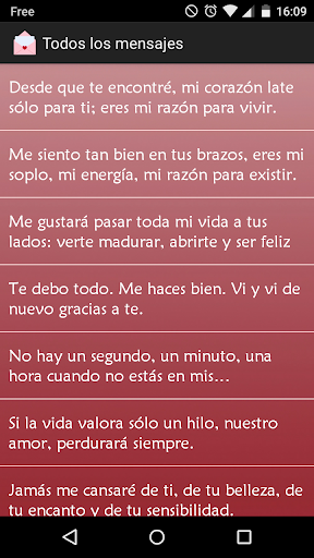 Le basta con lanzar la aplicación, con seleccionar la frase que Usted desea enviar a su amor y de enviarle. Las frases están disponibles por categorías y Usted también tiene la posibilidad de conserve sus frases favoritas.