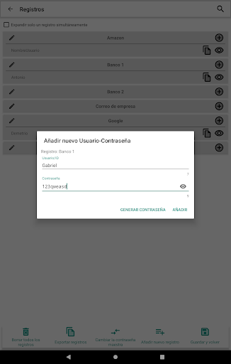Puede utilizar la aplicación para introducir lo que desee, la única restricción es que sólo una contraseña puede estar asociada a un usuario.