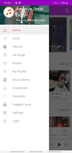 Categorías de música, Compilación de álbumes, Artistas destacados, Listas de reproducción, Características locales Lista de reproducción para audio en línea.