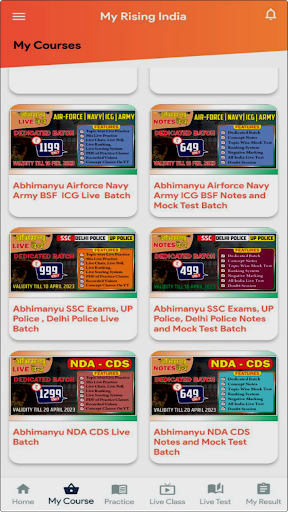 Únase a nosotros en mi India Rising y desbloquee su potencial para sobresalir en su defensa elegida o examen competitivo.Experimente la conveniencia del aprendizaje en línea, junto con la orientación personalizada y los recursos integrales.Comience su preparación hoy y emprenda un viaje hacia el éxito.