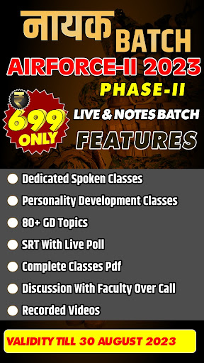 Nuestra aplicación también ofrece clases en vivo para defensa yCompetencia, clasificación de encuestas interactivas y características de la junta de líderes, notas de clase escritas a mano, series de pruebas diarias y series de pruebas de capítulos.Cubrimos una amplia gama de exámenes, incluidos los grupos de la Fuerza Aérea X e Y, Navy, Army, NDA/CDS/AFCAT 11 y 12 (Cursos de la Fundación NDA), SSC CPO, SSC CGL, SSC MTS, SSC GD, SSC CHSL, yExámenes a nivel estatal.