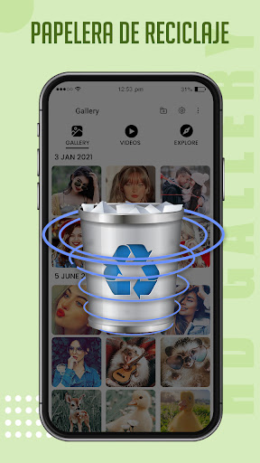 Recicle elimine accidentalmente fotos y videos importantes en su dispositivo Android. La galería con papelera de reciclaje siempre da un suspiro de alivio, ya que hay una papelera de galería desde la que se pueden restaurar todos los medios. Restaure el video de fotos eliminado por error con solo un toque para recuperar los medios de la galería.