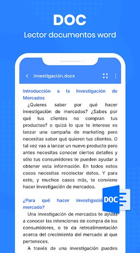 • Visor Docx con una pantalla de lectura simple y elegante que cuenta con los controles esenciales.
