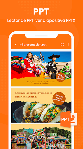 • El lector de documentos para Android le permite ver fácilmente archivos de Word, Excel, PowerPoint, texto y PDF