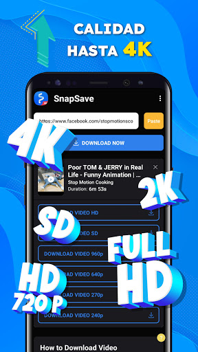 Descargador de Videos de FB Gratis de SnapSave le permite descargar videos de Facebook de alta calidad: Full HD, 2K, 4K. A pesar del pequeño almacenamiento, SNAPSAVE.APP es un descargador de video integrado y renderizado de video y historia de facebook descargar, descargando videos con calidad que van desde 144p, 240p, 360p, 720p, HD, 1080p, FULL HD, 2K a 4K, lo que la convierte en la aplicación única que puede hacer. Descargador de videos hd para facebook y descargar video de historia de facebook. App para descargar videos privados de facebook y guardar historias de facebook con música.