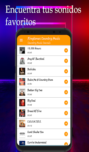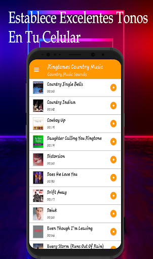 Esta aplicación tiene una gran colección de los mejores sonidos y tonos de éxitos de Country para teléfonos Android. Todas las canciones se han seleccionado personalmente para que pueda descargar la mejor colección de sonidos y ringtones de llamada de Country para tu teléfono, puedes descargar el archivo en mp3, compartir los sonidos en redes sociales o configurar su canción favorita en su teléfono Android y puedes establecerla como tono de llamada, sonido de SMS, sonido de alarma o sonido de notificación; recuerda que no podrás escuchar los sonidos offline, sin conexión a internet o wifi, ya que es necesario descargar los archivos de mp3.