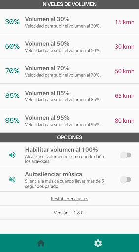 - Control inteligente del volumen de la música de tu dispositivo según la velocidad a la que circules.