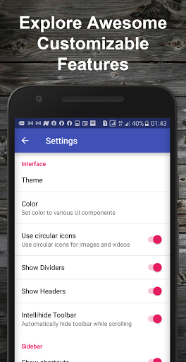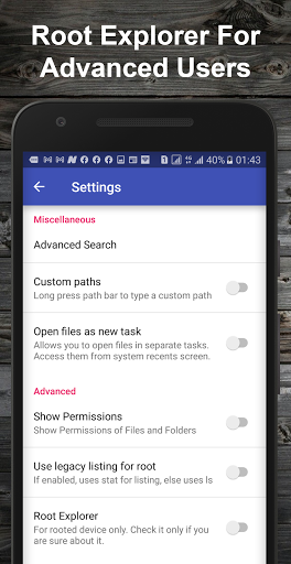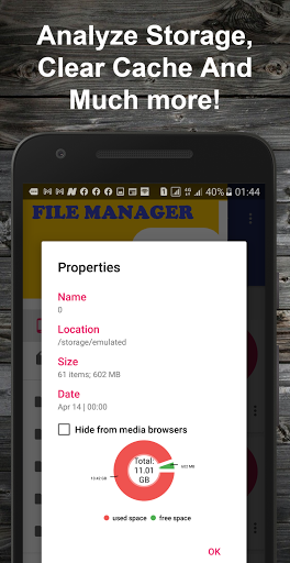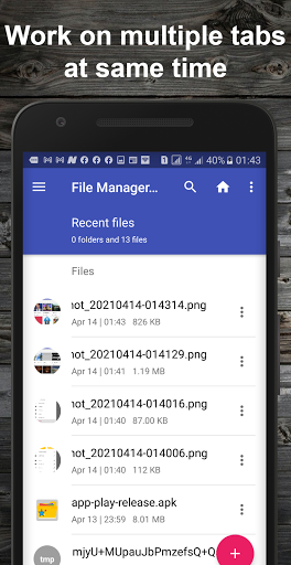 Admite todas las acciones de administración de archivos (Abrir, Buscar, navegar en el directorio, copiar y pegar, cortar, Eliminar, cambiar el nombre, comprimir, descomprimir, transferir, descargar, marcar y organizar). File Manager Pro admite archivos multimedia y formatos de archivos principales que incluyen APK.