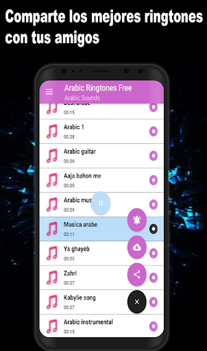 Estas buscando tus ringtones favoritos con música árabe, así que deja de buscar porque ahora los tienes aquí fácil de usar y descargar en tu móvil los mejores tonos para mensaje arabic 2019, tonos árabes clásico el teléfono, desde cualquier parte del mundo gratis, con una gran variedad de selección de tonos de danza árabe, tonos árabes bailable para celular gratis, que estarán disponibles a cada momento y en cualquier lugar. es hora de que disfrutes y comparta con tus amigos por medio de las redes sociales de tus preferencias los mejores tonos para whasapp gratis, descargar sonidos de canciones árabes gratis, todas las canciones de árabes en inglés, sonidos orientales y realiza una gran lista con variedad de tus tonos favoritos y escucha todos los sonidos de notificaciones 2019, todos los tonos más famosos de las canciones árabes, están disponibles en todo momento, esta App es sencillamente fácil de usar.