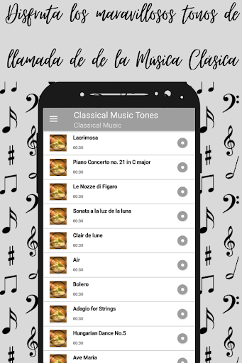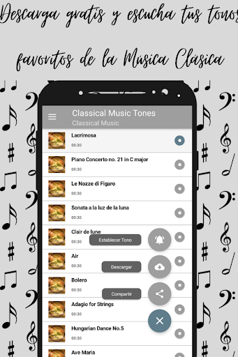 Descarga ya los mejores tonos de musica clasica gratis, estos efectos y sonidos de grandes instrumentos que hace este género musical único, la App cuenta con funciones que puedes colocar los tonos gratis para llamadas, alarmas y notificaciones.