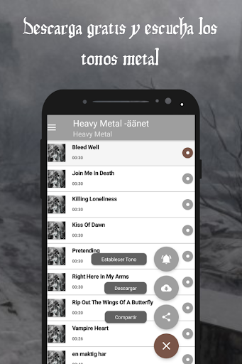 En Heavy Metal Sounds tenemos una gran cantidad de canciones aclamadas y tonos de música metal y un ritmo desde el cual puede usar tonos de llamada, timbres de alarma o notificación.