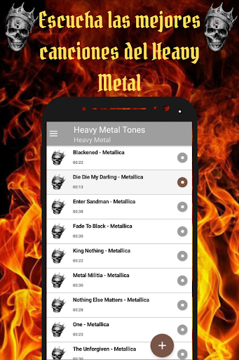 Disfruta de Heavy Metal Tones que esta App tiene para ti completamente gratis, contiene sonidos, canciones de diferentes artistas conocidos de grandes épocas, con diferentes melodías la cual te llevara a la imaginación de la gran variedad de tonos Heavy Metal que te ofrecemos, y la puedes escuchar todo el tiempo que guste, los tonos Heavy Metal que tenemos para ti contienen gran número de canciones reconocidas de la música metal, con sonidos y ritmos de los cuales puedes utilizar de alarma o tonos de notificaciones.