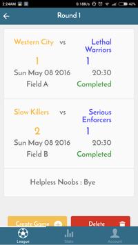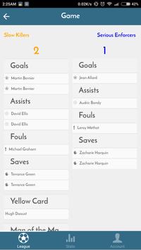 Ligas administradores pueden marcar juegos, pueden establecer un temporizador, poner metas / asistencias / faltas / salva a los jugadores del equipo utilizando un pop sencillo menú. También se pueden añadir notas de juego, tarjetas amarillas / rojas tarjetas y un hombre del partido. Los usuarios generales pueden ver el juego en particular actualiza en tiempo real, esto incluye el temporizador de juego.