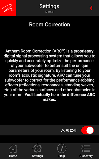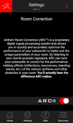 App based controls include volume level, low-pass filter (frequency and order), phase, 20–30Hz level, three preset listening modes, and control of Anthem Room Correction. A unique tone sweep feature assists users in locating areas in listening rooms where troublesome rattles or resonances may occur. A single press of a button allows listeners to initiate a tone sweep from 20–120Hz. If a rattle or resonance occurs in the room any frequency can be held, allowing the listener to investigate and identify the source of the unwanted noise.