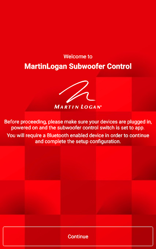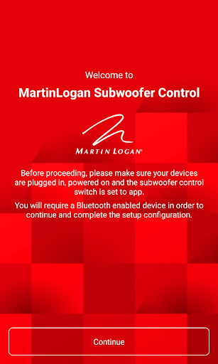 The MartinLogan Subwoofer Control App uses a Bluetooth connection to simplify setup and configuration of compatible MartinLogan subwoofers.