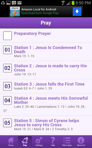 This Application consists of stations's image, Bible Reading, Prayers and Meditations. This will help you to know the Passion of Christ in this lend period.