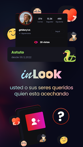 Con inLook, puede analizar a sus seguidores y ver 10 modelos de seguidores diferentes. ¿Quién es el mejor amigo de tu amigo o amante, que los está acechando? Incluso puedes analizar ambos perfiles en una sola aplicación.
