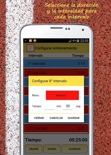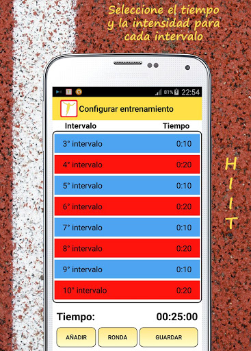 2- Entrenamiento de intervalos de alta intensidad HIIT: configure los intervalos del ejercicio indicando la duración y la intensidad para cada uno.