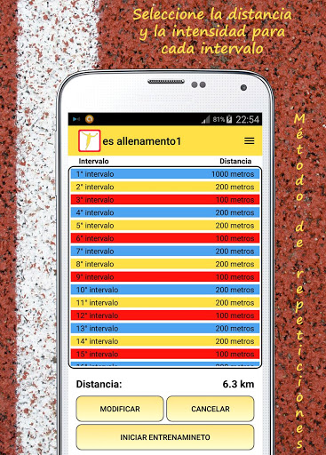 1 - Método de repeticiones con intervalos: configure los intervalos del ejercicio indicando la distancia y la intensidad para cada uno.