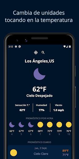 - Cambia las unidades de medida clicando en la temperatura actual.