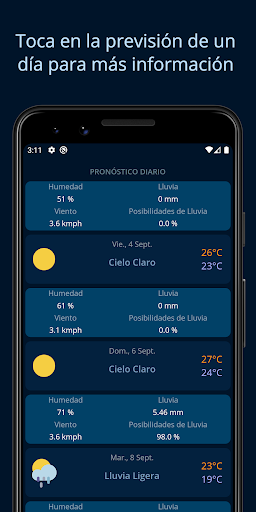 - Consulta la predicción diaria para los siguientes 7 días.