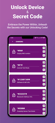 La aplicación de código secreto de su teléfono móvil le brinda los detalles que no puede encontrar en su móvil directamente.Use esta aplicación de dispositivo de desbloqueo para obtener toda la información utilizando la aplicación Secret Codes.