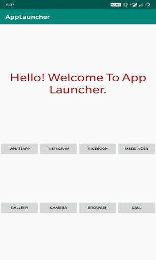 Esta aplicación se utiliza para lanzar diferentes aplicaciones importantes como Facebook, Whats App, etc. Utiliza los conceptos de intención desarrollados en el estudio Android.