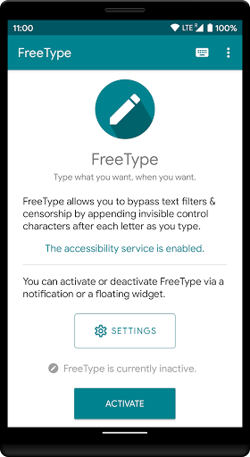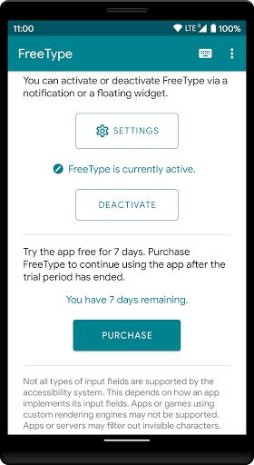 Para trabajar Freetype Debe habilitar el servicio de accesibilidad de FreeType en la configuración de accesibilidad de Android.