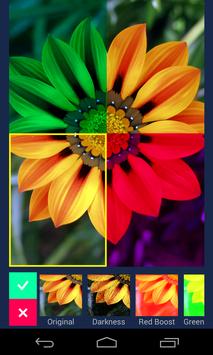 Instead of adding an effect to the whole photo, the photo is divided into four equal parts and then you can apply different effects to different parts individually!