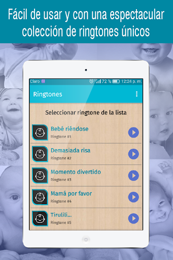 ¿Buscando nuevos tonos de llamada para tu dispositivo móvil? Descarga la nueva app de tonos de bebes para celular y personaliza el sonido de tu dispositivo eligiendo el que más te guste de la gran variedad de sonidos gratis para teléfono disponibles.