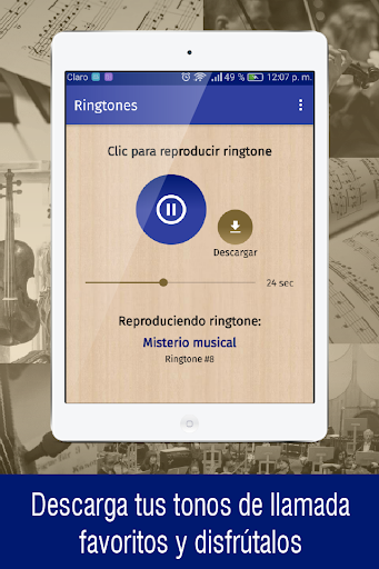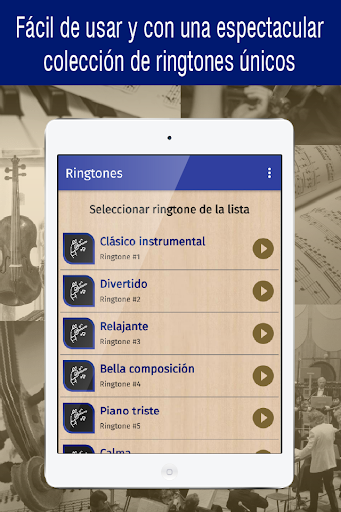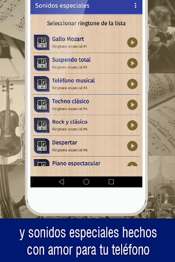 tonos musica clásica es una app pensada especialmente para tu celular, con una colección genial de sonidos clásicos que puedes usar como: tonos de llamadas, tonos de sms, alarma o notificación.