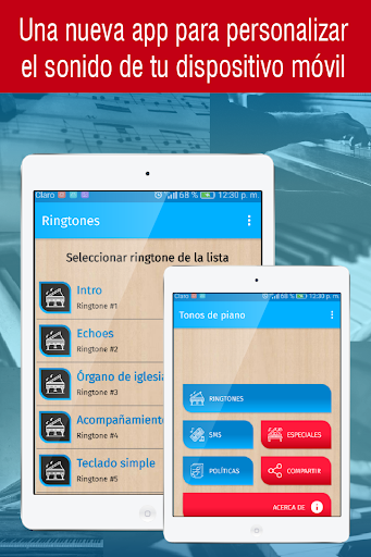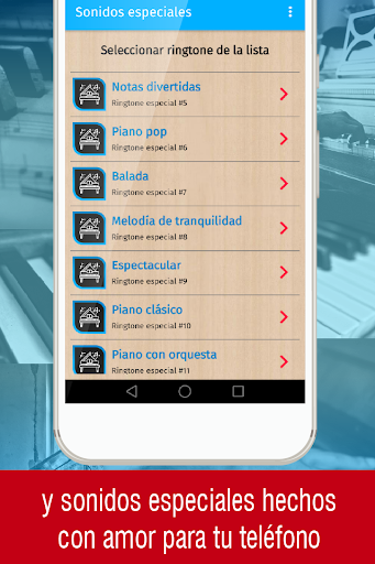 ¿Buscando nuevos ringtones para personalizar tu dispositivo móvil? ...Descarga ahora mismo y disfruta de nuestra app tonos de piano para celular (incluye sonidos de pianos y ringtones piano) para personalizar el audio de tu celular con esta gran variedad de sonidos gratis para teléfono.