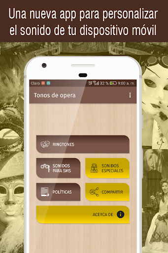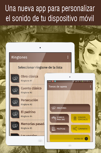 Ya está disponible en Play Store para descargar y disfrutar la nueva aplicación Tonos de opera para celular gratis, la nueva app con sonidos de opera para celular (úsalos como tonos de llamadas, tonos de sms, alarma o notificación) para disfrutar y personalizar tu teléfono con ringtones de opera (nuevos tonos de llamada). Descarga el tono que más te guste y personaliza tu teléfono móvil ahora mismo.