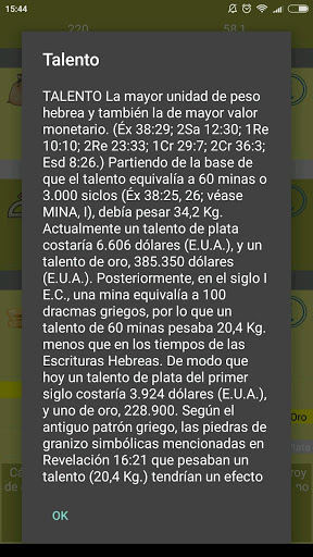 Podrás convertir unidades bíblicas a actuales Europeas, Americanas e Inglesas. Imprescindible para cualquier estudiante de la biblia. Incluye: