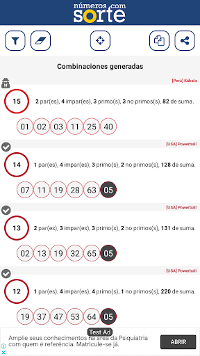 La aplicación te permite generar combinaciones usando reglas, como: números fijos, más pares, más impares, más secuencias, con o sin bloqueo numérico, etc. ¡Entonces solo copie o comparta!