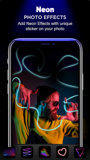 Neon Photo Editor merece su intento de inmediato. Tiene más de 1000 efectos de fotos. Con Neon Photo Editor, su foto será tan brillante como una obra de arte.