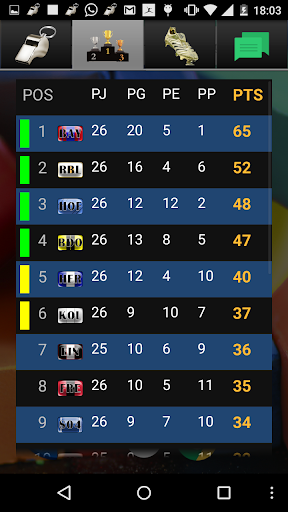 - Recibe notificaciones PUSH en tu móvil de tus equipos favoritos. Te avisará el inicio, descanso y final de partido, asi como todos los goles del encuentro.