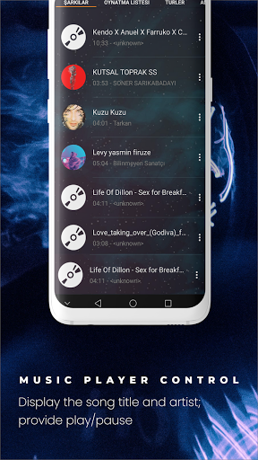 Music Player Control Display the song title and artist; provide play/pause, next song, previous song, and other control of your music player.