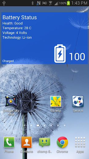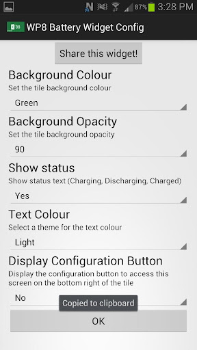 ¿Siempre quise tener ese azulejo de batería de Windows 8 en su dispositivo Android? ¡No espere más, el widget de batería WP8 le permite experimentar el azulejo de la batería WP8 en su dispositivo Android! Simplemente seleccione un color y estés establecido! ¡También se puede utilizar en su pantalla de bloqueo! ¡Este widget de batería WP8 lo hace mejor! ¡También lanzará la aplicación de la batería de su sistema cuando haga clic en él!